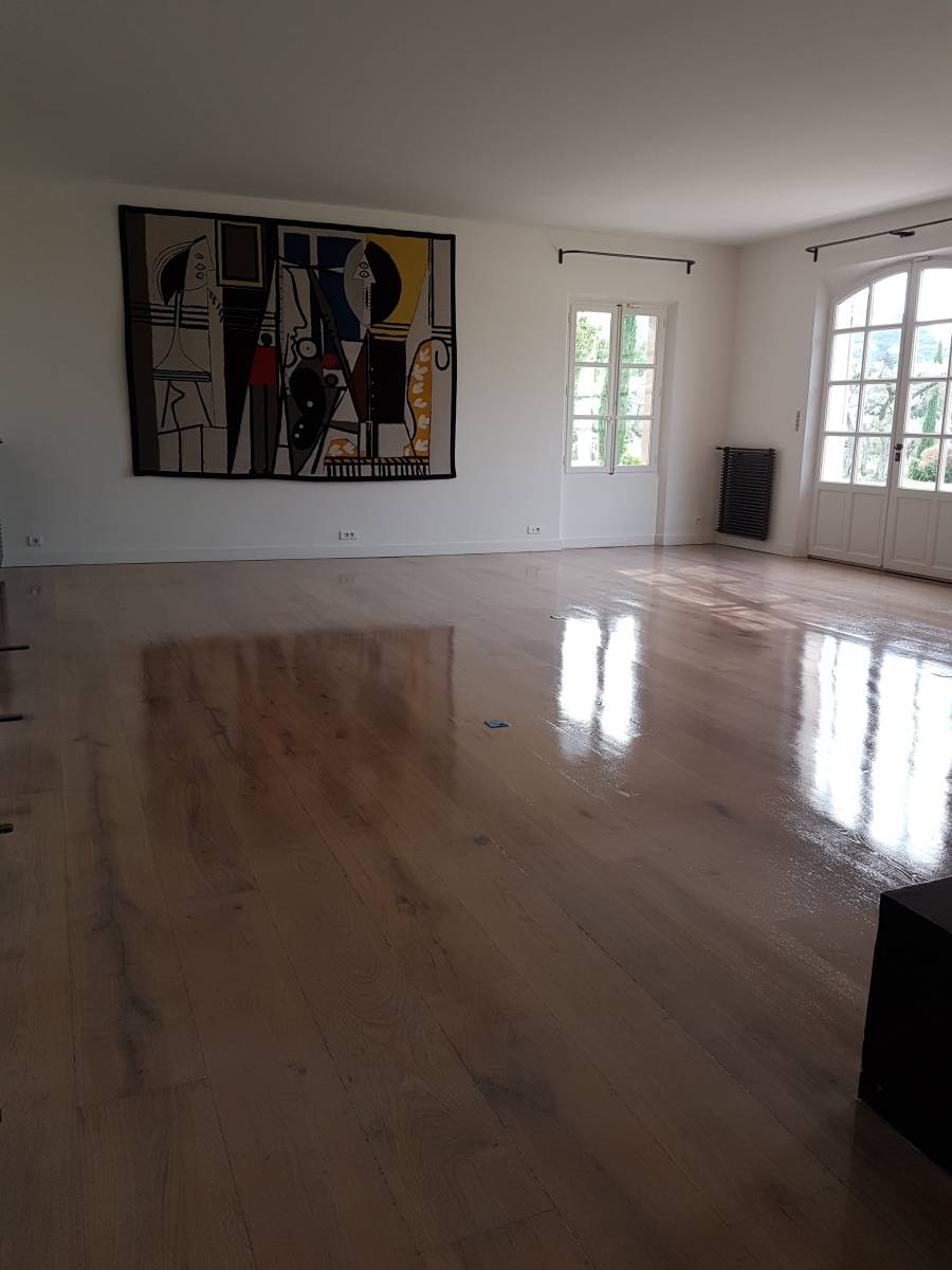 A la fin du ponçage du parquet, la finition choisi par le client à été appliqué.