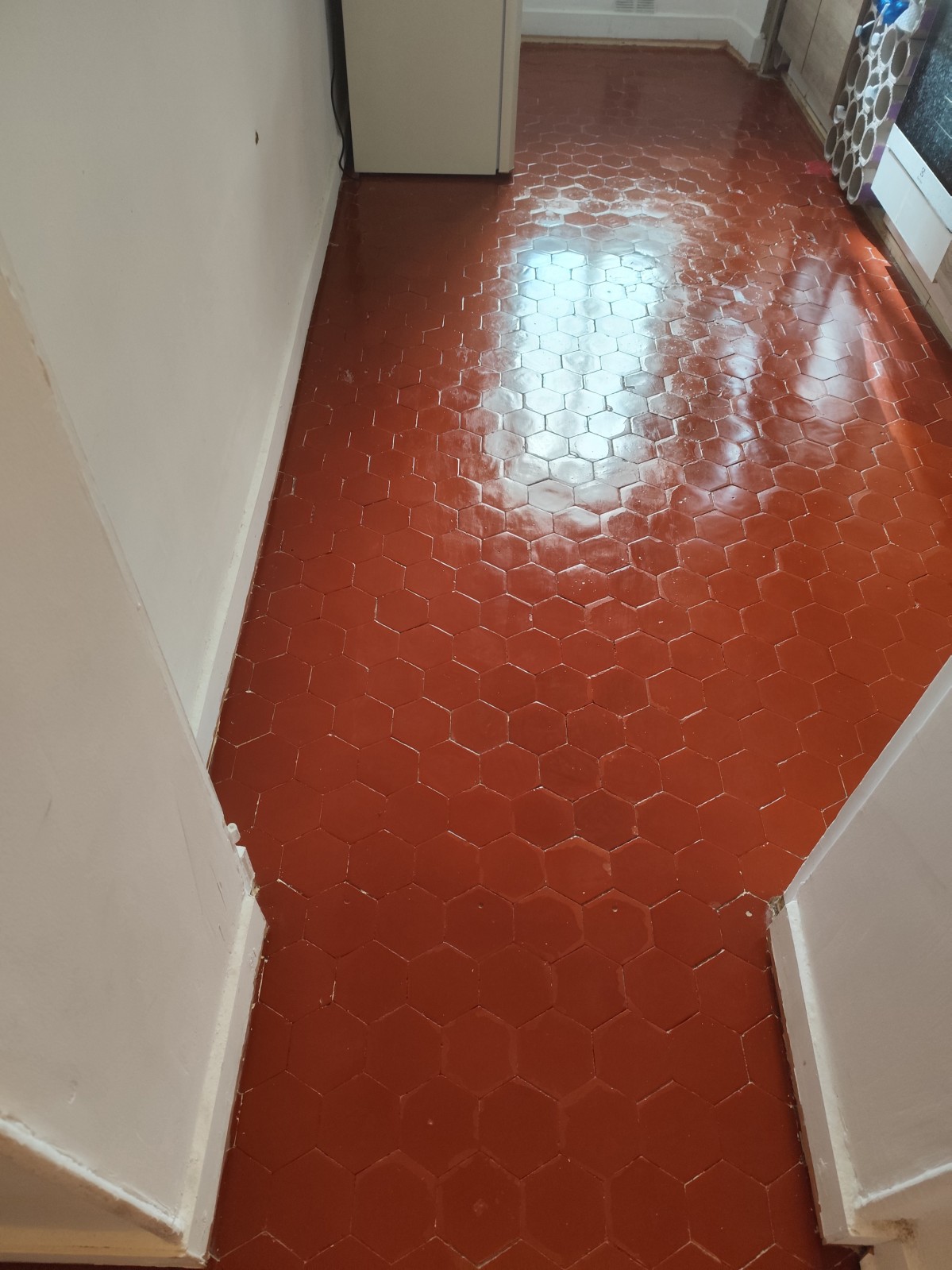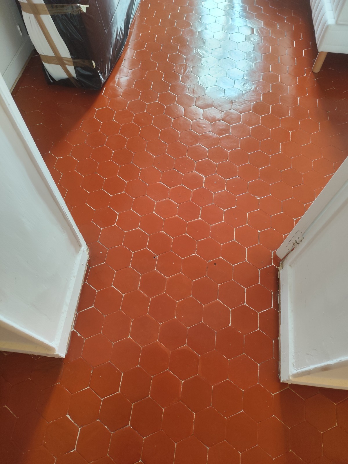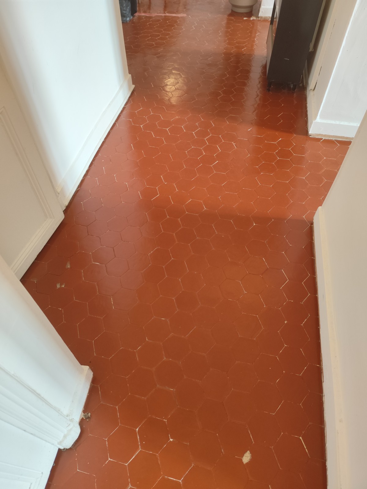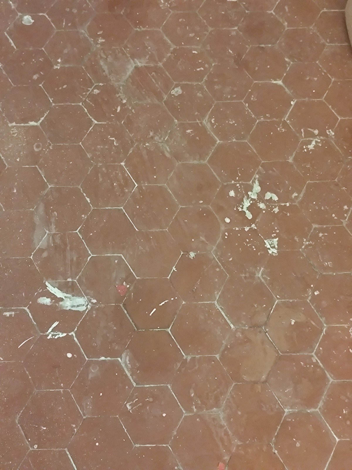 Afin de ne pas abimer les Tommettes,un décapage mécanique avec un décapant spécifique a été utilisé.